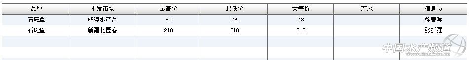 中國水產頻道報道,2013年11月11日水產品批發市場石斑魚價格行情如下: