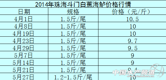 下圖是2014年2月8日以來珠海斗門白蕉海鱸的具體價格: