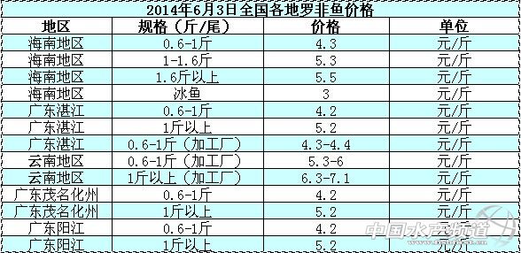 本周各地羅非魚加工廠減少羅非魚的收購量、降低羅非魚的原料價格,導致羅非魚的價格相比上周出現大幅度的下跌。具體價格如下: