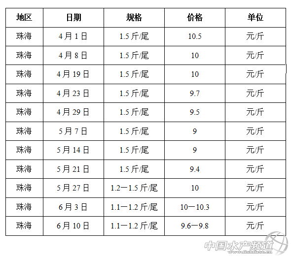 中國水產頻道原創報道,今天(6月10日),圖1 是珠海地區斗門白蕉海鱸的具體價格: