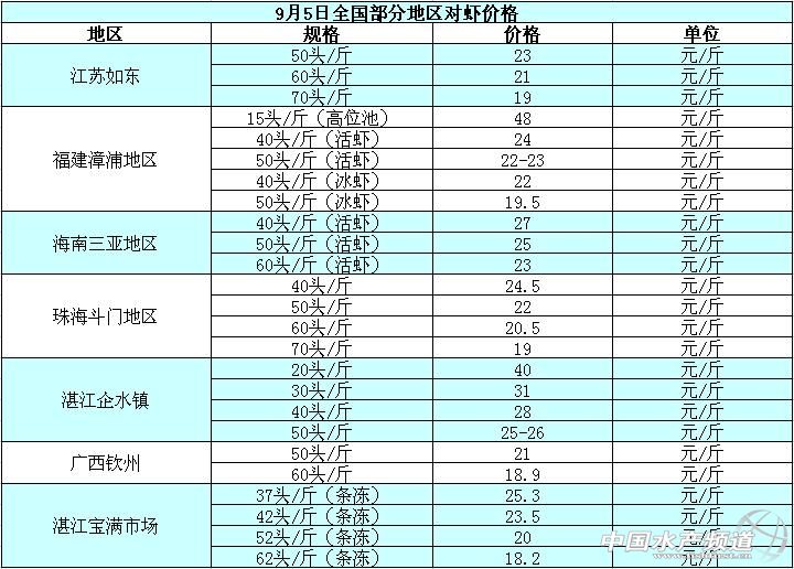 據(jù)悉,再過3天就是中秋節(jié)啦,本周各地的對蝦出塘量、銷售量、價格都一路走俏,對蝦存塘量少、價格高企,養(yǎng)殖戶賣蝦意愿很強(qiáng),市場銷售量好,蝦中收蝦量也在加大。現(xiàn)在整體的行情處于高漲的狀態(tài),很多業(yè)內(nèi)人士都說按照往年的行情來看,中秋節(jié)前蝦價會一路高漲,節(jié)后蝦價就會有所下滑。9月5日各地的對蝦價格如下: