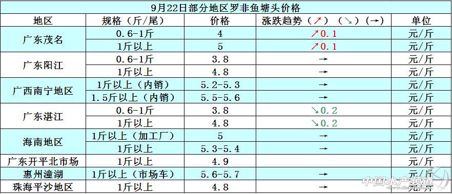 據(jù)悉,近期各受災(zāi)地區(qū)的養(yǎng)殖戶都在忙于災(zāi)后魚塘的清理和重建,臺風(fēng)過后氣壓和魚塘的水質(zhì)都出現(xiàn)比較大的變化,很多存塘的羅非魚都開始出現(xiàn)發(fā)病死亡的現(xiàn)象,受此影響,很多養(yǎng)殖都在大量拋售羅非魚,所以整體的行情方面比較亂。養(yǎng)殖戶也很關(guān)心災(zāi)害的苗種供應(yīng)和苗種質(zhì)量問題,但近期很多養(yǎng)殖戶都說苗種供應(yīng)很緊張,一直買不到苗,而且苗價(jià)也上漲了很多。9月22日部分地區(qū)羅非魚價(jià)格如下: