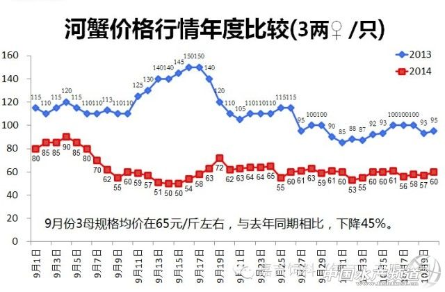 中國水產(chǎn)頻道報道,受農(nóng)業(yè)節(jié)氣影響,今年河蟹開市較早,8月20日左右便有河蟹出售。開市半月價格與去年同期即有下降。截至目前,河蟹價格低迷,大概是到禮品經(jīng)濟的影響。