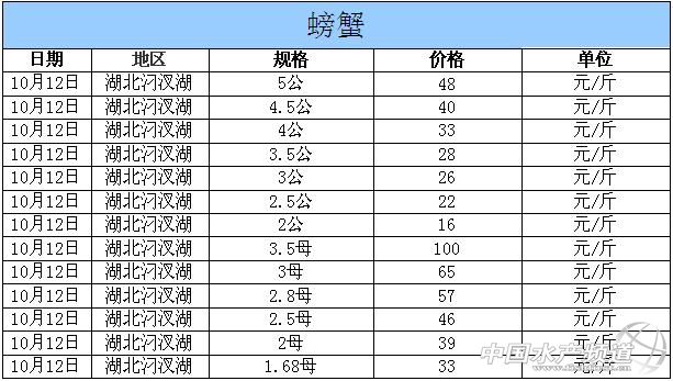 2014年10月12日湖北汈汊湖河蟹價(jià)格行情