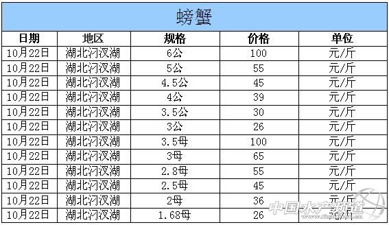 2014年10月22日湖北汈汊湖河蟹價(jià)格行情