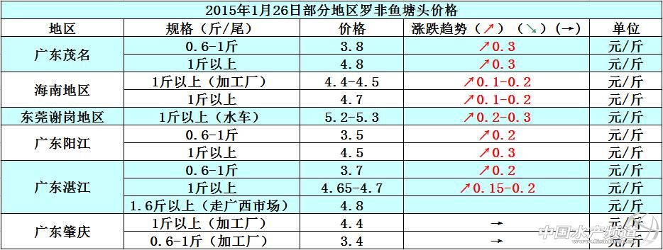 據業內人士了解,最近一周以來粵西地區的魚價都在緩慢上漲,主要原因有兩個,一個是廣西地區因為存塘羅非魚量很少,無法滿足市場需求,所以廣西地區很多魚中跑到粵西地區收購羅非魚,以致于粵西地區的魚價出現上漲,但是廣西魚中偏向于收購大規格的羅非魚而且價格會高很多,例如1.6斤以上/尾規格的羅非魚價格是4.8元/斤;還有一個原因就是部分加工廠近期的收購訂單比較多,致使加工廠的存貨已經差不多清空了,加工廠也要在放年假之前收購一定的庫存量,最近加工廠的收購量有所增加,所以魚價也自然會出現上漲。魚價上漲了,但粵西地區很多養殖戶都期望魚價上漲到5元/斤的時候再出售,加上粵西地區白天的氣溫普遍有23-25°C,羅非魚也不會出現凍傷或者病害,養殖戶更加不愿意賣魚。