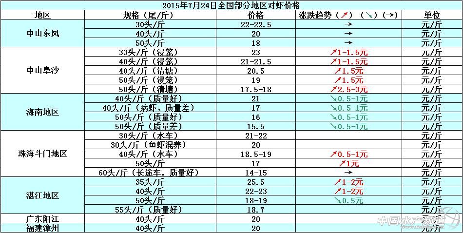 6月下旬,端午節假期一過,各地對蝦的市場消費量劇減,整體銷量馬上呈現回落狀態,受此影響,蝦價也跟著不斷下跌,預計短期內各地的蝦價上漲難度大,后市行情不被看好。
