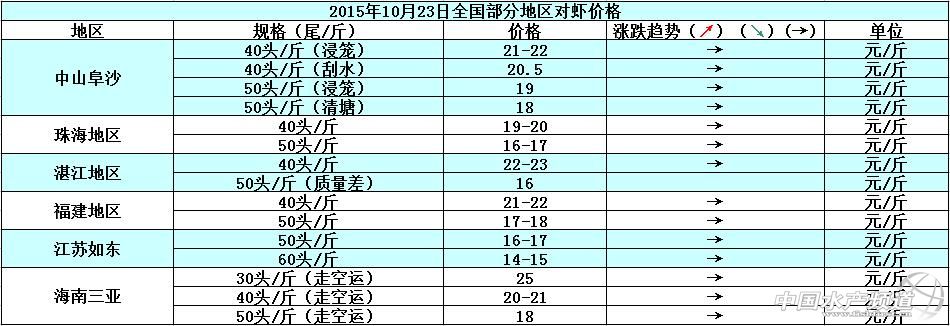 據悉,沒有節假日活動去推動市民的消費需求,近期各地的對蝦銷售行情都不理想,而且部分地區的市場還時不時出現滯銷現象,按照現在的行情推算,預計10月內各地的蝦價行情難有起色。具體價格如下: