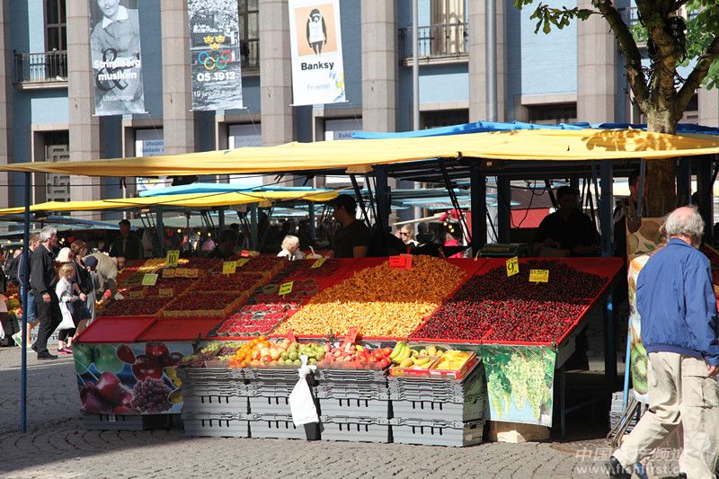路邊的水果攤,賣的有櫻桃,我看見9.7克朗,以為是一公斤價格,買了才知道旁邊寫著hg,意思是100克9.7克朗,和國內價格差不多。