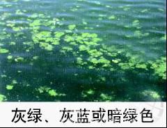 灰綠、灰藍或暗綠色:起因:有害藻類濃度大,并開始死亡分解,水面呈現(xiàn)浮油污狀物。灰綠、灰藍或暗綠色屬不良水色,水體中有害藻類濃度大,多數(shù)藻類已死亡分解,水面漂浮片狀物質(zhì),水質(zhì)渾濁,水帶有粘性,開增氧機后泛起的水花久久不散像洗衣粉的泡沫。