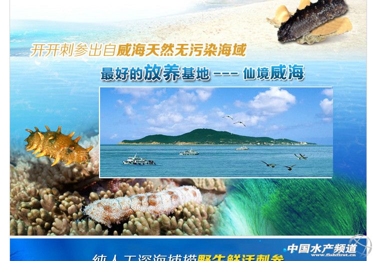 “威海刺參”是具有特定產地范圍、生產方式、產品品質的商品名稱,其產地范圍為威海市轄區的自然海域及灘涂大水面池塘,產品生產方式為自然生長及底播增殖。由于威海海水潮流暢通、水質清潔、鹽度穩定,且海水內巖礁眾多、海藻茂密、浮游生物豐富,是全國近海增養殖環境質量最好的地區之一,也是海參生長不可多得的理想之地,威海刺參也因此具有個體肥大、突刺粗鈍、肉質肥厚、口味純正、出成率高等特點。
