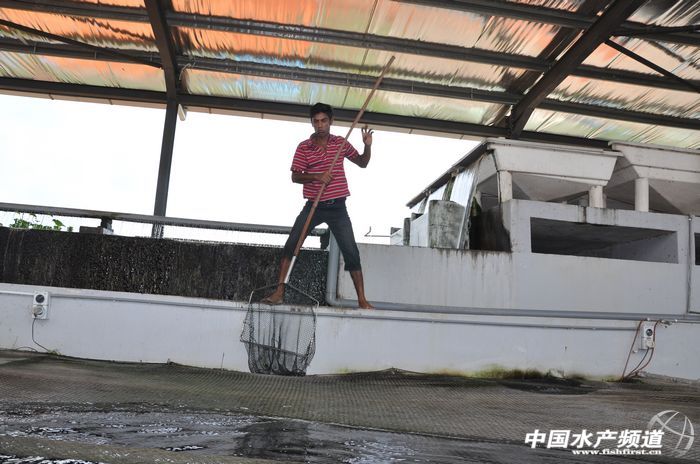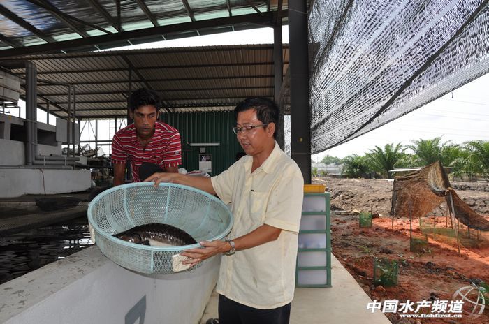 看看這個大家伙!梁慶翔先生也是當地華僑,不過你可能想不到,他之前是做音樂的哦!因為看到了水產養殖的前途,加上對于音樂版權的無可奈何,便來養魚了!