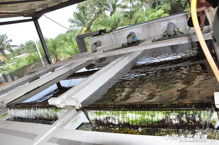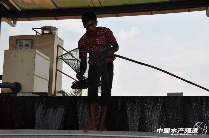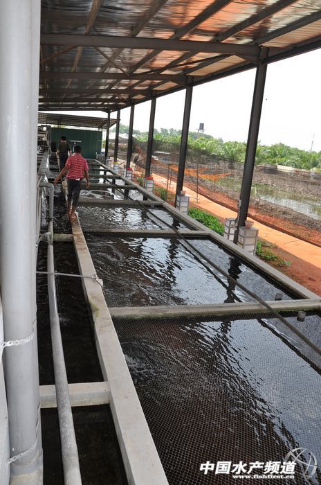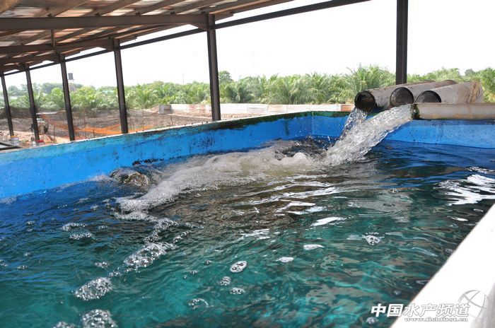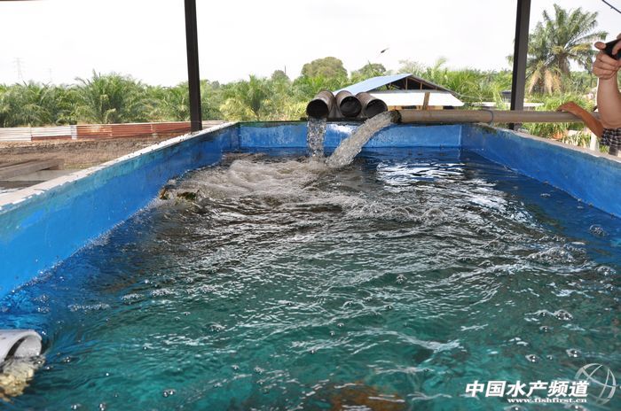 這是臺灣與馬來政府一起投資的循環水養殖場,剛剛建好,去年才開始養第一批魚,因為成本比較高,這里養殖的都是非常名貴的魚種,如鱘魚,他們本地的國寶級的魚——忘不了。這條魚我們下面還會介紹他的名字的命名者哦!據這個養殖場的負責人梁慶翔先生介紹,他預計4年后收回成本。這里有12個池,有2名外勞管理。