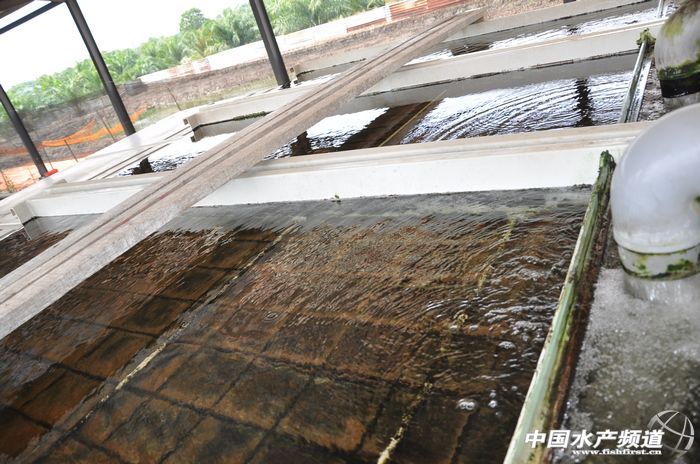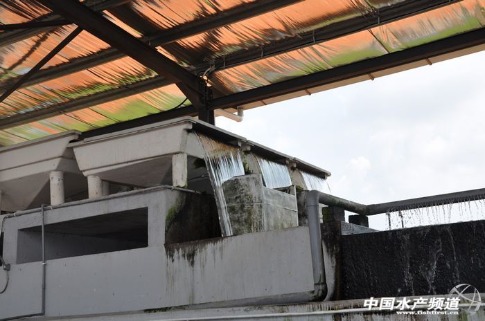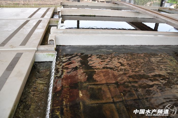 這個循環水每周都會定期投放一種超級細菌,用來保持水體的清澈,另外,由于養殖密度比較高,每個池也都有微孔增氧設備。