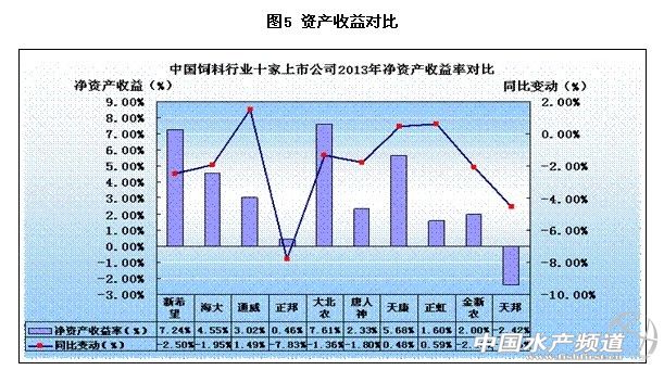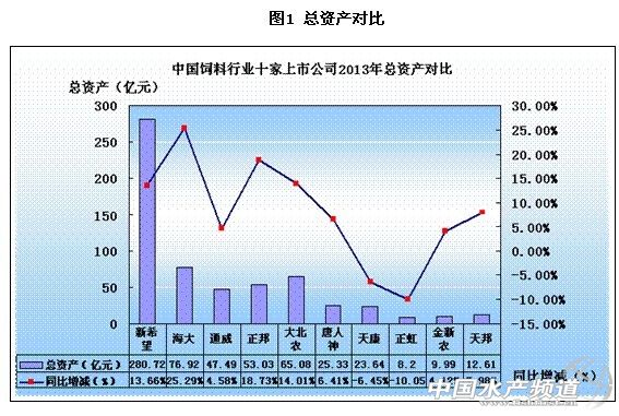 這10家企業2013年上半年的總資產為603.01億元,比2012年度末增長12.71%,與全國規模以上企業平均增長的11.1%高出1.61個百分點,保持并稍高于全國規模以上企業平均增長水平。其中,新希望六和以280.72億元的總資產排位第一,總資產在50億元上的有海大(76.92億元)、大北農(65.08億元)、正邦科技(53.03億元)。除正虹科技和天康生物兩家公司的總資產與上年末略有下降外,其余8家的總資產都比上年度末都有所增加。其中,增幅最大的是海大集團,由上年度末的61.39億元增加到76.92億元,增長15.53億元,與上年度末增長25.29%;其余7家總資產增加分別為新希望六和280.72億元、增加33.73億元,比上年末增長13.66%;大北農65.08億元、增加8億元,比上年末增長14.01%;正邦科技53.03億元、增加8.36億,比上年度末增幅18.73%;通威股份47.49億元、增加2.08億元,比上年末增幅4.58%;唐人神25.33億元、增加1.52億元,比上年末增幅6.41%;天邦股份12.61億元、比上年末增幅7.89%;金新農9.99億元、增加0.4億元,比上年末增幅4.12%。充分表明飼料企業第一方陣在當前經濟結構調整中的投資擴張步伐在穩步發展,并與全國經濟形勢保持了一致。