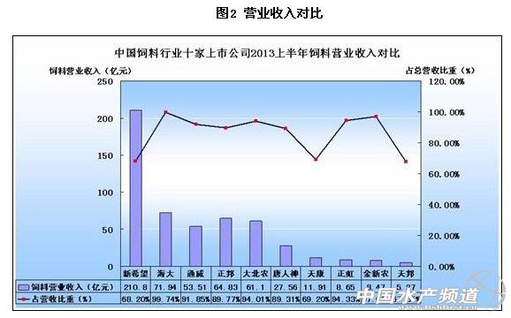 2013年上半年,10家上市公司的總營業收入同比下降0.43%,飼料營業收入整體增長2.6%。在10家上市公司中,主要是以飼料營業為主,飼料營業收入均占到總營業收入的86%以上,其中占到89%以上的企業有7家,分別為海大集團99.74%、金新農97.02%、正虹科技94.33%、大北農94.01%、通威股份91.85%、正邦科技89.77%、唐人神89.31%。飼料營業收入決定了公司營業收入的變動方向。3家飼料營業收入下降的企業其總營業收入也都相應下降,且不論增長幅度還是下降幅度都十分相近。在10家公司中,飼料(飼料及飼料原料)營業收入下降幅度最大的是天邦股份,較上年同期下降幅度為23.96%,主要由于其成本投入減少,減少幅度和收入相近,為24.47%。但天邦股份同期生物柴油及化工油脂營業收入和營業成本都大幅增長,均為去年同期的三倍左右。因此,其總營業收入并無較大變動,只下降了3.05%。10家公司的飼料營業收入中以大北農同比增長幅度最大,高達51.53%,其次正邦科技、天康生物、海大集團與上年度相比分別增長18.08%、17.04%、14.43%,通威股份、金新農、唐人神分別同比增長6.88%、5.24%和3.57%。從近三年數據來看,今年上半年除大北農比前兩年增長上漲外,其他均為下降。