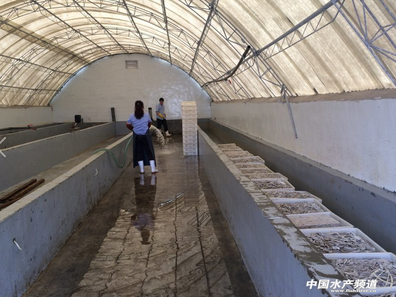 在循十我們還經(jīng)常刷池子,先全池潑灑按比例兌好的雙氧水,再用刷子刷一遍池壁和池底,將污物慢慢集中到水池中央的排水口。進(jìn)水水管上不好用刷子刷的地方,可以用抹布仔細(xì)擦拭幾遍。氣線也要擦干凈,最后用水管把整個(gè)池子沖洗一遍,防漏魚的箅子蓋到排水口處,開閘放水就行了。刷池子的工作量也不小,忙的時(shí)候我們一天能刷六七個(gè),在一個(gè)個(gè)一米多高的水池上爬上爬下,還經(jīng)常拖著好幾十米的水管走老遠(yuǎn),稍不留心就會(huì)被自己笨重的水鞋絆一腳,腿上常被磕的青一塊紫一塊的。不過我們幾個(gè)相互鼓勵(lì)著,也不感到疲憊了,幾個(gè)回合下來,我爬池子的技術(shù)提高了不少,靈活多了,動(dòng)作也麻利起來,讓兩個(gè)男生刮目相看。經(jīng)過實(shí)習(xí)我才明白,人內(nèi)在的潛能都是需要激發(fā)的,之前覺得不可能的事,只要你盡力去做,也能變?yōu)榭赡埽瑢?shí)習(xí)帶給我的是一種磨練,一種對(duì)生活全新的認(rèn)識(shí)。