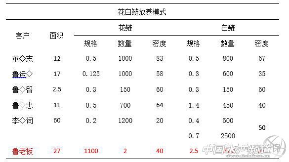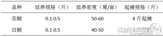 在華中區以草魚養殖為主的養殖模式中,在確保合理的養殖模式下,花白鰱高產一直是養殖戶追求的目標,咸寧渡普口區域亦是如此,目前在該市場花白鰱放養模式主要如表1所示: