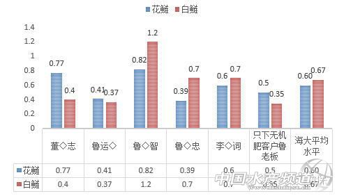通過圖1可以清楚的看到,執行海大肥水方案的客戶花鰱增重最大的達到0.82兩,白鰱增重最大的達到1.2斤,花鰱平均增重0.6兩,白鰱平均增重0.67兩,而未執行海大肥水方案的魯老板增幅都小于這個平均水平,相隔0.1-0.3兩之間,可見海大肥水方案在花白鰱長勢方面還是較傳統施肥較有優勢的。