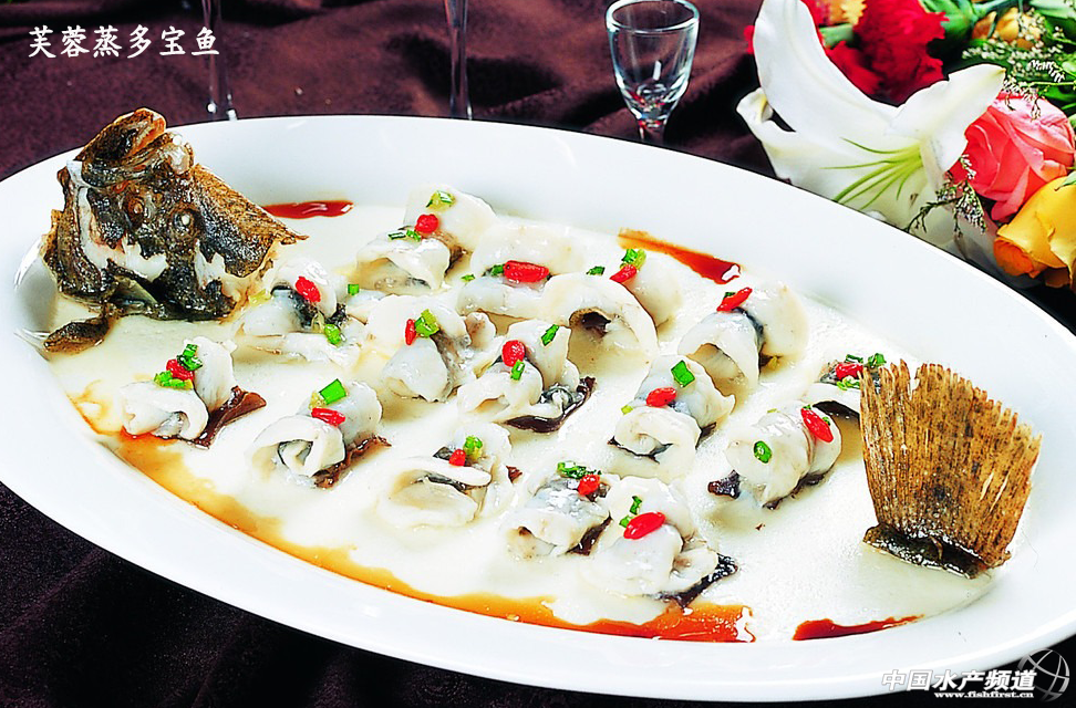 多寶魚在中國 多寶魚肉質潔白細膩,口感軟嫩爽滑,味道鮮美香醇,營養豐富,富含DHA、蛋白質、各種維生素鈣和鐵,其鰭邊和皮下含有極為豐富的膠原蛋白。且多寶魚魚刺少易食,深受兒童的喜愛和年輕人的追捧。多寶魚與偉大的中國烹飪完美結合,已完全融入中華美食,菜品種類不計其數,形成了豐富的多寶魚飲食文化。
