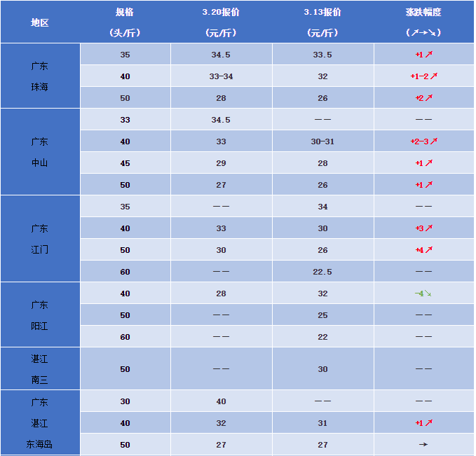 中國水產(chǎn)頻道原創(chuàng)報道,珠三角本周蝦價熱鬧開漲,湛江繼 03-22