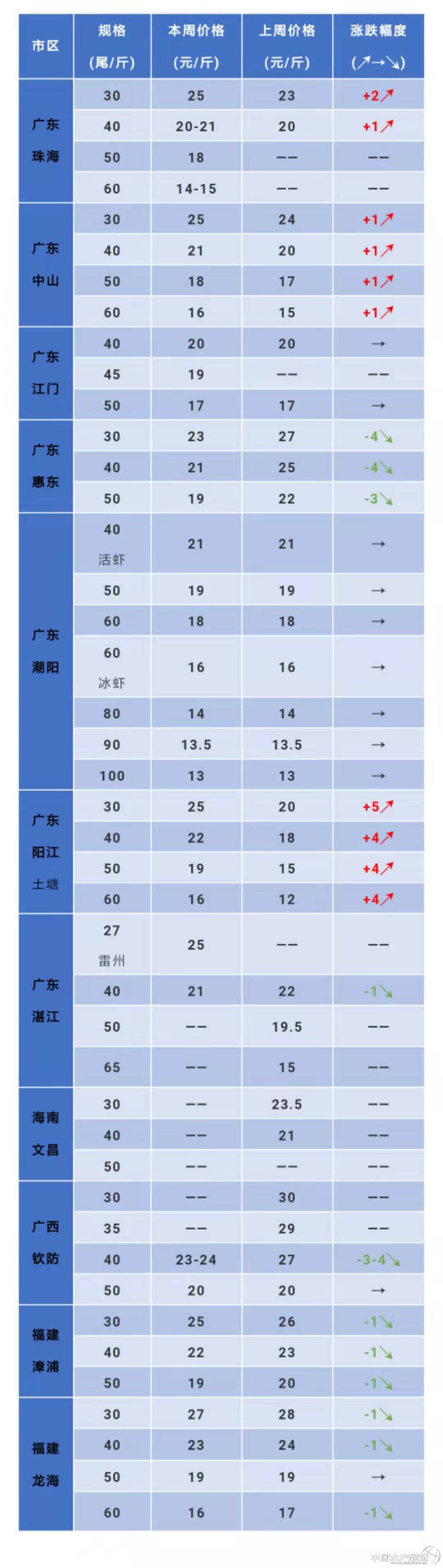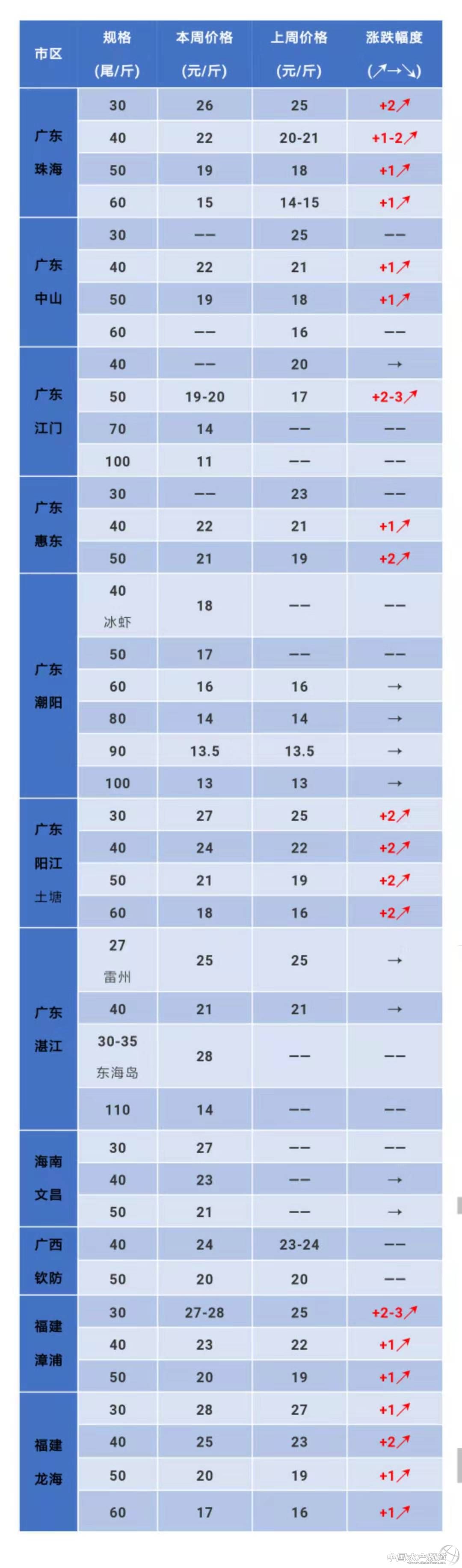 中國水產(chǎn)頻道原創(chuàng)報道,本周廣東省內(nèi)蝦價全面上漲,其中 01-17