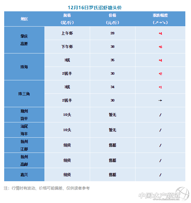 中國水產(chǎn)頻道原創(chuàng)報道,最高漲幅6元/斤!羅氏沼蝦大反彈 12-18