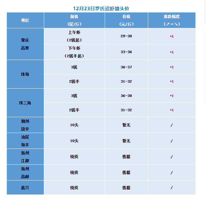 中國水產(chǎn)頻道報道,本周珠三角地區(qū)羅氏沼蝦再漲1元/斤, 12-31