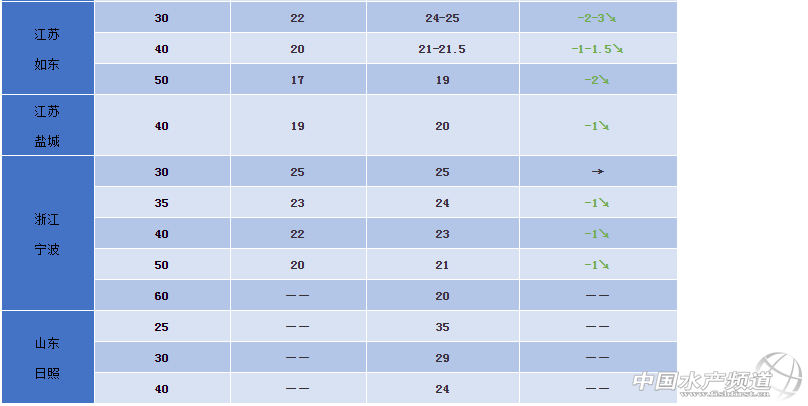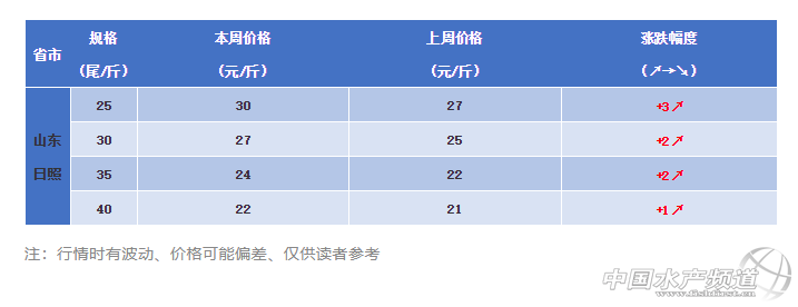 中國水產(chǎn)頻道報道,本周山東省內(nèi)蝦價不同地區(qū)走勢不一。 05-07