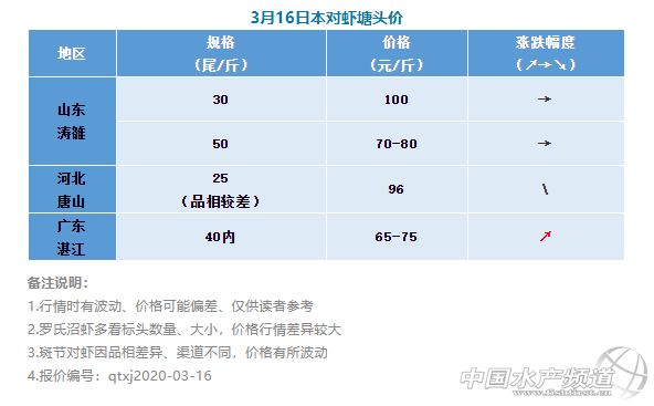中國水產(chǎn)頻道原創(chuàng)報道,本周蝦價穩(wěn)中帶漲,羅氏沼蝦、斑 03-18