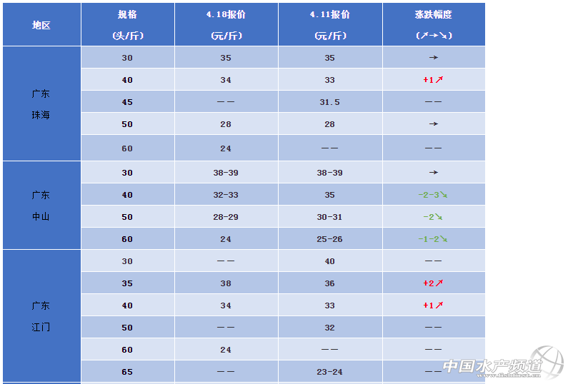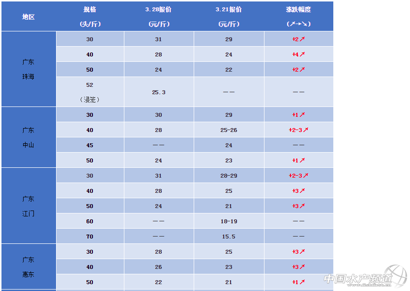 中國水產(chǎn)頻道原創(chuàng)報道,珠三角暴漲,福建穩(wěn)漲緊隨其后, 04-13