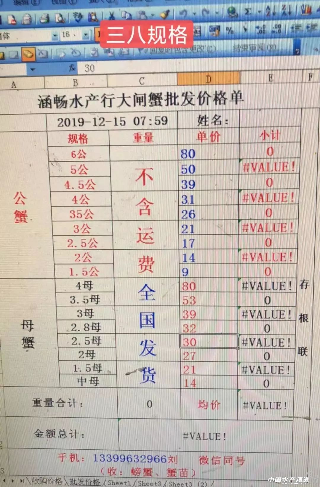 中國水產頻道報道,蟹價平穩! 12-20