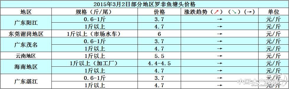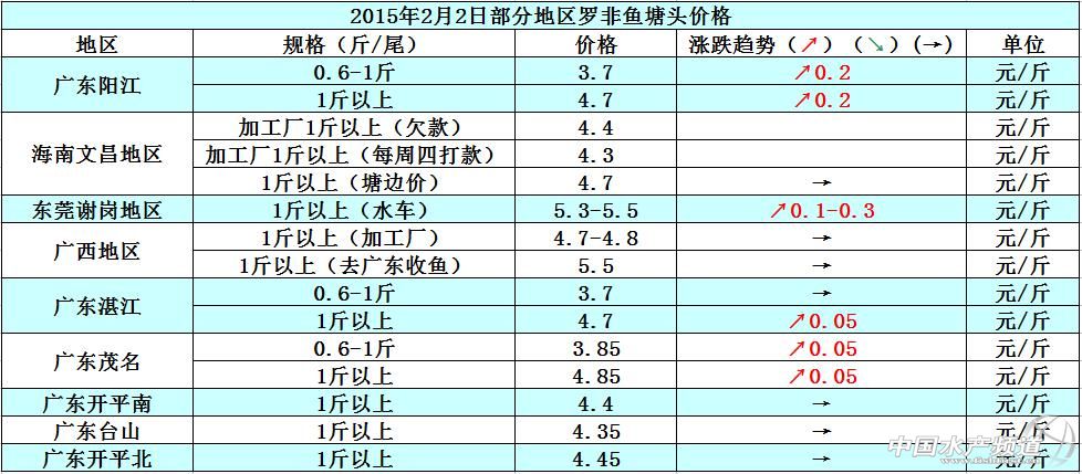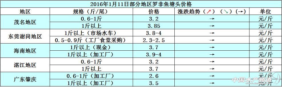 本周各地的羅非魚價格相比上周基本持平,主要原因是羅非 01-13