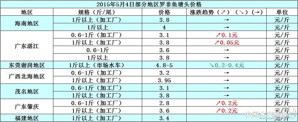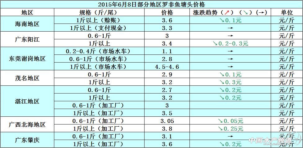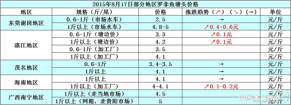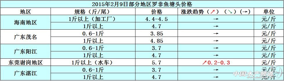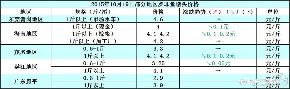 羅非魚價格周報:出口量少內