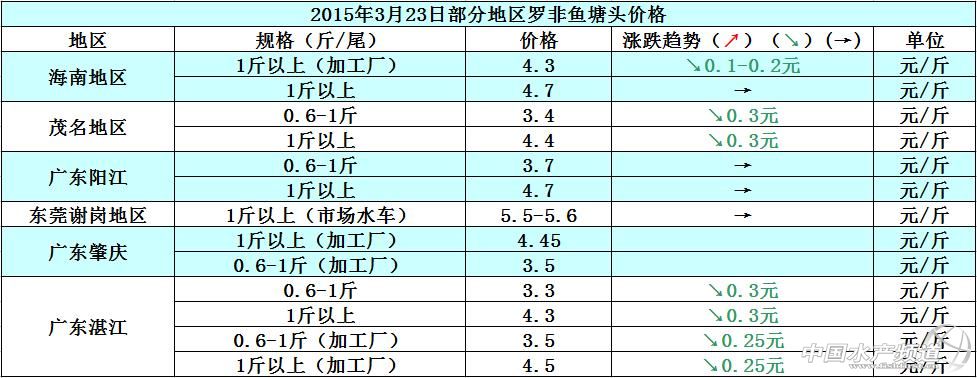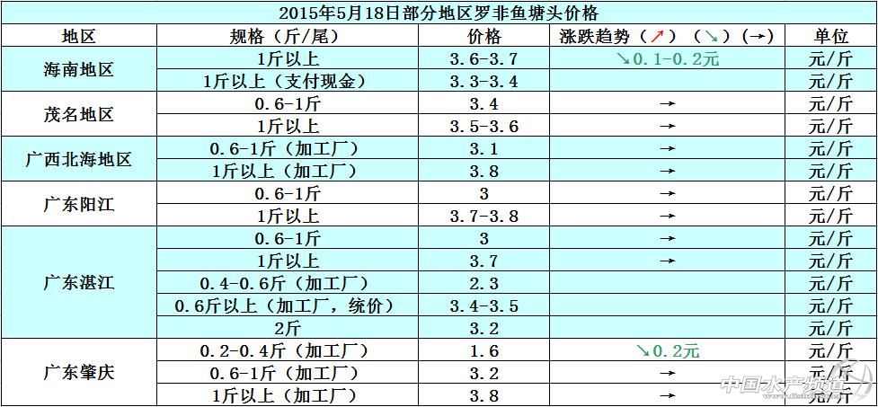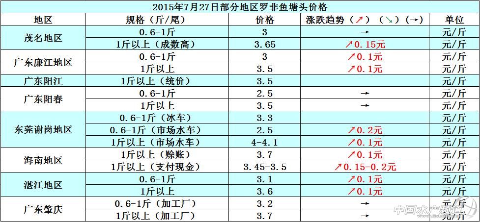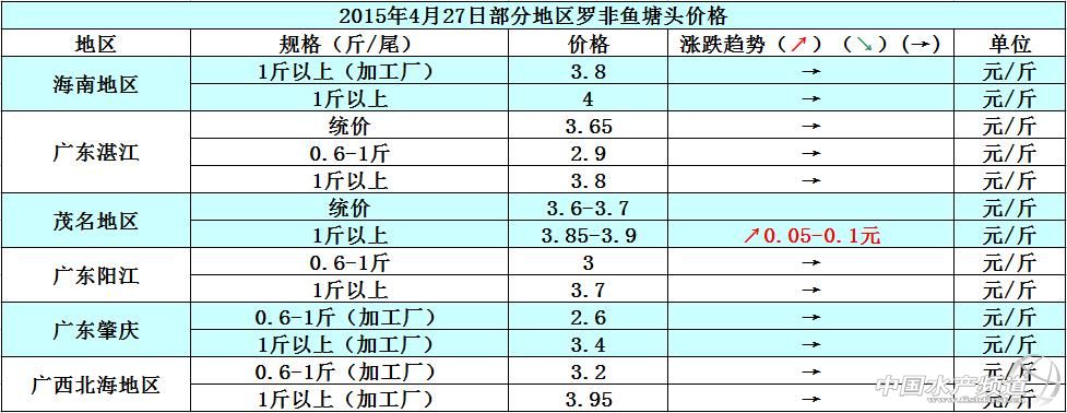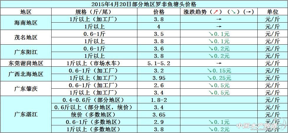 羅非魚價格周報:整體出魚量