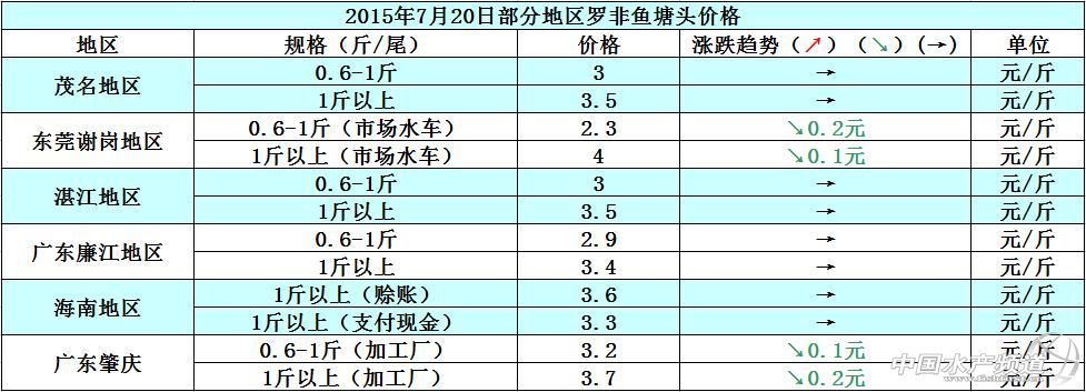 羅非魚價格周報:合規格存塘