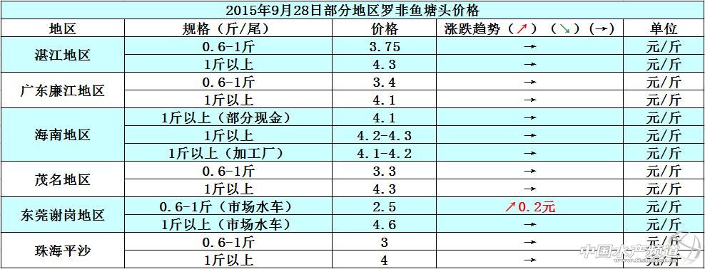 本周各地的羅非魚出塘量還是很少,畢竟加工廠庫存量充足 09-29