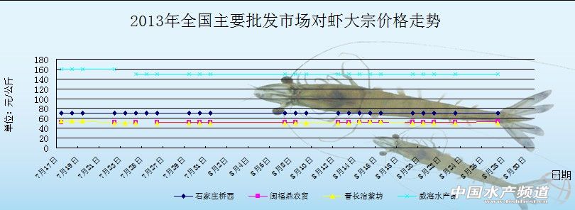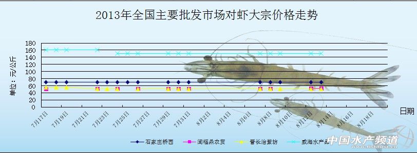 8月13日全國主要批發(fā)市場對蝦價格行情如下: 08-14