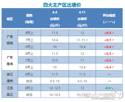 中國水產頻道獨家報道, 華南養戶待價惜售,華東卻趕著清塘放苗! 文/圖杰大飼料 水產前沿實習編輯李曉欣聯合發布 本周各產區加州鱸行情 廣東順德:今天報價6兩上10.4元/斤左右,7兩上11-11.1元/斤,8兩上12元/斤。8兩上加州鱸塘頭價從7號開始回升至12元/斤,由于存塘的商品魚養殖成本增大,養殖戶出魚積極性仍舊不高。6兩上規格報價較為混亂,主要看魚塘大規格魚所占比例。目前魚車抓魚較為嚴格,特別是7兩上、8兩上規格相差1兩,價格卻相差1元/斤,很多養戶不愿出7兩上規格,觀望心理增強。 廣東南海:今天報價6兩上10.4元/斤左右,7兩上11元/斤左右,8兩上12元/斤,實際成交價與報價有0.2元左右出入。近來南海出魚的養殖戶不多,特別是沙頭九江地區,出魚的養殖戶很少,加上沙頭傳統養舊魚模式,目前的價格還未達到養戶心理預期,惜售心理較強。 浙江湖州:今天報價8兩上11.5元/斤,統貨報價9.5-10元/斤,本周價格變動不大。從浙江湖州整體來看,近期魚價或有下滑趨勢:一方面,清明節后當地養殖戶趕著放鱸魚苗,出魚養殖戶較多;另一方面,湖州地區鱸魚的整體條形相比江蘇吳江較差,流通商更青睞到吳江收魚,預計近期價格上漲機會不大。 江蘇吳江:今天報價8兩上12元/斤,統貨報價10-10.5元/斤,8兩上價格相比上周跌了0.5元/斤。目前吳江地區許多養殖戶趕著清塘放苗,出魚量較大,加上清明節前后外地水車到本地裝魚較少,價格略有下降。 四川成都:今天報價9兩上13元/斤,1斤以上14元/斤,9兩上價格相比上周跌了0.5元/斤。當地部分養殖戶為避免加州鱸排卵后變瘦以及產后病,趕在產卵前出魚,出魚量有所增多。 湖北武漢:今天報價9兩上12.5元/斤,價格相比上周持平。目前湖北地區放苗養殖戶有所增多,據當地一養殖戶反映,其本來預計10號放苗,但因最近苗少,放苗時間推延到20號左右。 廣西南寧:今天報價1斤上價格13-14元/斤,價格相比上周持平。目前養殖戶普遍待價惜售,下周將迎來農歷三月三傳統節日,預計后市或會有所上升。 【關鍵字】:加州鱸 價格行情 水產養殖 |