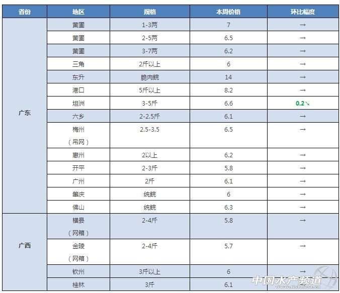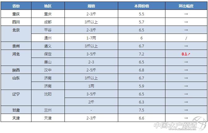 中國水產頻道獨家報道, 1.江蘇駱馬湖網箱魚已經很少,本周價格上漲明顯,一周內最高上漲0.4元。 2.近期有很多養殖戶反映寄生蟲病較嚴重,希望養殖戶提前做好預防工作。 今日行情 雖然馬上迎來五一節假日,但是從目前全國各地的草魚行情來看,整體還是處于消費疲軟,行情低迷狀態,價格相比上周整體上沒有出現明顯變化。其中華中,華南和西南地區整體平穩,部分地區仍有小幅下滑。華東地區和北方地區整體價格平穩,其中江蘇、福建和河北部分地區出現價格上漲。近期除了“五一”節假日消費利好外,還有馬上迎來的黃渤海全面禁漁等行情利好因素,加上近期魚價一路低迷,有一定的漲價空間,五一后草魚價格有望出現一波上漲。同時,了解到受到去年好行情的刺激,大部分養殖戶屯了一部分魚等待魚價,部分地區成魚銷售呈現一定壓力。希望養殖戶朋友理性規劃,合理安排賣魚,避免扎堆。 華南地區 華南地區草魚行情在上周出現一波下滑之后,除了中山和江門部分地區仍有2-3毛的下滑之外,其他大部分地區草魚價格本周基本恢復平穩。 中山:本周中山地區草魚價格波動不大,部分地區掉了2毛左右。 東莞:本周東莞地草魚價格保持穩定。 江門:從江門養殖戶了解到,近期大鰲的草魚降價0.3元左右。 梅州:目前梅州大部分地區草魚最新塘頭價6.5元/斤,基本維持上周水平。蕉嶺地區最新的市場零售價為11元/斤,塘頭價7元/斤。 佛山:目前佛山地區3斤以上草魚最新塘頭價6.3-6.6元/斤,價格基本維持穩定。據佛山南海養殖戶表示,近期當地草魚價格還是沒有上漲,行情依然低迷。 肇慶:本周肇慶地區價格保持穩定,統鯇塘頭價維持在6元/斤。 廣西:廣西貴港養殖戶表示,目前的價格還是老樣子,3-5斤草魚最新塘頭價6.1元/斤,2斤起的5.8元/斤。 華南地區塘頭價 華中地區 江西:本周江西地區草魚價格沒有出現明顯變化,贛州、宜春等地區的草魚整體價格基本維持上周水平,南昌部分地區小規格草魚有0.3元左右的下滑。據江西南昌養殖戶反映,最近江西的草魚不好賣,目前價格還沒有漲,1.3斤左右草魚最新塘頭價4.9元/斤,2-3斤草魚最新塘頭價5.3元/斤,較上周有0.1元的下滑。有江西宜春養殖戶反映,目前存塘魚還比較多,預計還需要個吧月價格才有可能有所好轉。 湖南:本周湖南地區草魚價格也是依然沒有太大變化。湖南永州養殖戶表示,目前還沒有漲價動態,保持原價。對于近期價格能否上漲,有常德養殖戶表示:“不降價就阿彌陀佛了”。從湖南養殖合作社了解到,近期湘陰地區草魚價格維持上周水平,但是走量大了一點。益陽養殖戶表示,目前肉價都還在跌,魚價暫時沒有變化,要漲有點難。常德養殖合作社了解到,目前當地的價格也是沒有太大變化,還是老樣子。據湖南婁底的養殖戶表示,當地的草魚價格有一點上漲的勢頭,暫時價格仍保持穩定。 湖北:湖北價格維持穩定,2-3斤草魚最新塘頭價基本維持在5.3-5.4元/斤。 河南:目前河南地區草魚價格維持穩定。據業內人士反映,目前市場上魚很少,后期價格看漲。河南開封地區2-4斤的最新塘頭價6.5元/斤,4-6斤塘頭報價7.2元/斤,價格維持穩定。 華中地區塘頭價 華東地區 福建:本周福建草魚價格維持原價,暫時還沒有漲價趨勢。福建南的草魚價格有小幅上漲,最新塘頭報價6.5-6.6元/斤。 浙江:本周浙江地區草魚價格繼續保持穩定,杭州地區2-3斤草魚最新塘頭報價6.4元/斤。 江蘇:徐州地區最新報價3.5斤草魚7.2元/斤,4斤以上的7.3元/斤,4.5斤以上的7.4元/斤,5斤以上的7.5-7.6元/斤。 安徽:安徽淮安養殖戶表示,目前價格還那樣,基本維持穩定。 華東地區塘頭價 天津:本周武清地區草魚最新塘頭價6.7元/斤,較上周有0.1元的上漲。 四川:本周四川地區草魚價格整體維持穩定,除了廣元地區了解到有0.2元的上漲,其他大部分地區仍有下滑趨勢。據了解,目前四川的草魚不是很好賣,價格仍有小幅下滑。四川綿陽目前價格也是沒有上漲趨勢,養殖戶對于價格能否上漲表示非常關注。四川德陽地區最新塘頭價5.8元/斤,暫時沒有漲價趨勢。成都地區目前沒有上漲反而還有下跌趨勢,有養殖戶今天剛剛賣的2.5-4斤草魚裝車價5.7元/斤。據四川廣元養殖戶表示,最近當地草魚價格開始出現小幅上漲,較上周上漲了0.2元左右。 遼寧:有養殖戶表示,目前遼寧地區草魚價格還沒有看出上漲的趨勢。 河北:本周河北保定地區最新塘頭價7.2元/斤,較上周保持小幅上漲。有唐山養殖戶表示,目前因為市場需求量不大,價格基本穩定在6.5元/斤,等五一過后應該會有所改變。 陜西:據西安養殖反映,最近當地的草魚價格沒有太大波動,目前半斤起的塘頭報價6.2元/斤,2斤起的6.5元/斤,4斤左右的6.8元/斤,價格基本維持在上周水平。 內蒙:內蒙古呼和浩特流通商表示,近期當地草魚價格保持穩定,暫時沒有出現波動。 其它地區塘頭價 【關鍵字】: 草魚價格 草魚價格行情 水產養殖網 |