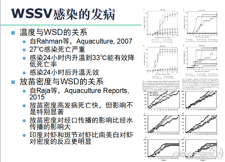 中國水產頻道獨家報道,4月28日,由水產前沿雜志、中國水產頻道主辦,廣東海茂投資有限公司協辦,廣東海威水產養殖有限公司、廣東綠百多生物開發有限公司、廣州市普精生物科技有限公司支持,臺州金湖龍機械設備有限公司、湛江騰飛實業有限公司贊助的“2018中國養蝦高手峰會——臺山站”在臺山碧桂園鳳凰酒店舉辦,中國水產科學院黃海水產研究所黃倢研究員、廣東海洋大學杜國平老師、廣東海洋大學孫成波教授、臺山杰出養蝦達人羅本茂、廣東海茂投資有限公司營銷中心南方營銷部蘇偉盛總經理、廣東海威水產養殖有限公司陳剛總經理、廣東綠百多生物開發有限公司事業部苗廣輝總經理、廣州市普精生物科技有限公司朱盛山技術總監、臺州金湖龍機械設備有限公司潘丹紅銷售經理、湛江騰飛實業有限公司珠三角負責人施國華、以及企業高層、華南多個區域的養殖戶共近300位參與本次會議。 黃倢《2017年南美白對蝦病害回顧與風險防控策略》 2017年,廣東省對蝦病害檢出率最高的是腸胞蟲、虹彩病、急肝;海南省檢出率最高的是急肝病、虹彩病。然而,以病毒病來說,白斑病毒是對國內對蝦影響最大的病毒病。 然而,白斑病并不容易看到,白斑病和紅體是一起存在的,白斑病不單單是看體表是否有白斑,還要檢查其他癥狀,而最重要的是觀察甲殼和皮肉是否粘合,眼球是否反光。 近段時間,大家較為關注的蝦血細胞虹彩病毒病,黃倢老師在會議上也做了介紹。 大家一直猜測的“黑腳病”與虹彩病毒的相關性,黃倢老師表示,“黑腳”不是SHIV特征性癥狀,而可能是死后皮膚氧化所致。針對病毒病的預防,可以采取以下措施: 1、加強病毒早期檢測 2、完善的清池消毒措施 3、殺滅或驅除小型甲殼類 4、穩定、改善水質,不大排大灌式換水 5、保持良好的溶氧 6、降氨氮、亞硝氮 7、采用微生物增強的生物絮團技術 8、飼料中添加抗病微生物 9、定期、適量地投喂免疫增強劑 10、魚蝦混養 2017年廣東省影響較大的急性肝胰腺壞死病菌株包括副溶血弧菌、坎貝氏弧菌、歐文氏弧菌。可能出現以下癥狀: 1、肝臟白膜減少–白膜消失–顏色變淺–黃白–灰白–透明 2、攝食停止、空腸空胃 3、尾扇附肢發藍–蝦體發藍–蝦肉渾濁–蝦體發白 4、快速死亡、跳跳死 5、幼蝦死亡率>80% 6、成蝦死亡率低 急性肝胰腺壞死病可以有針對性預防措施: 1、加強AHPND早期檢測 2、設蓄水池,做好蓄水池水質管理 3、嚴格清池消毒 4、控制放苗數量 5、少吃多餐模式投喂,控制投喂總量,嚴格避免殘餌 6、保持水質、底質良好,控制其中的副溶血弧菌數量 7、有規律換水或及時排出糞便、多施用有益微生物、施用蔗糖或采取生物絮團的養殖模式 8、降低鹽度(<6‰)和pH 9、飼料中拌喂抗病有益菌 10、與羅非魚、梭魚混養 除了上述病害的講述,會上,黃倢老師也介紹了蝦肝腸胞蟲感染預防措施。 【關鍵字】:對蝦 養殖高手 水產養殖 |