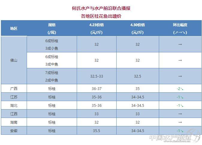 2、外省本地魚在五一節都大量出魚,受到廣東桂魚價格的沖擊,江蘇、湖北等地也出現不同程度的下跌。