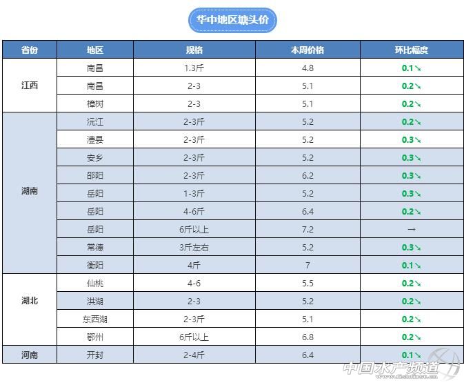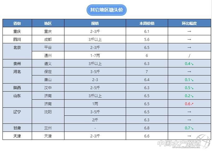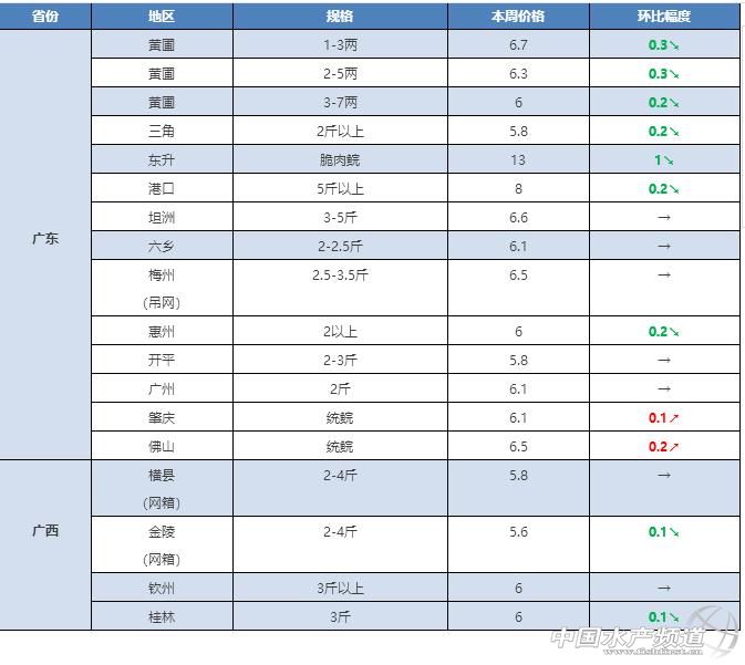 文/圖 水產(chǎn)前沿 鄭鵬飛 中國(guó)水產(chǎn)頻道獨(dú)家報(bào)道, 養(yǎng)得好,不如賣得好 全國(guó)草魚行情解析, 中國(guó)水產(chǎn)頻道與您相約每周二 今日關(guān)注 1.北方苗種供不應(yīng)求,價(jià)格明顯上漲,較上周最高上漲1元。 2.草魚存塘較大,五一節(jié)日消費(fèi)未能讓草魚行情有明顯起色,目前大部分地區(qū)價(jià)格繼續(xù)維持低位,期待禁漁后能有所好轉(zhuǎn)。 今日行情 本周各地草魚行情整體上沒有出現(xiàn)上漲,更多地區(qū)反而出現(xiàn)下跌。有養(yǎng)殖戶反映,往年“五一”魚價(jià)都會(huì)漲,今年的行情太奇怪了,只能地帶禁漁之后看看能否讓行情有點(diǎn)起色。各地請(qǐng)具體行情如下 華南地區(qū) 中山:本周中山地區(qū)草魚整體保持穩(wěn)定,部分地區(qū)價(jià)格下跌0.2-0.3元,有養(yǎng)殖戶表示目前看不到漲價(jià),看看禁漁之后能否出現(xiàn)上漲。 東莞:據(jù)養(yǎng)殖戶反映,這兩天消費(fèi)是有所增加,但是草魚塘頭價(jià)繼續(xù)保持平穩(wěn),沒有出現(xiàn)明顯變化,最新塘頭價(jià)5.8元/斤。 佛山:目前佛山地區(qū)3斤以上的草魚塘頭價(jià)6.5元/斤,價(jià)格整體保持穩(wěn)定,部分地區(qū)有小幅上漲。 肇慶:據(jù)了解,本周肇慶地區(qū)草魚價(jià)格有小幅上漲,目前統(tǒng)鯇最新塘頭價(jià)6.1元/斤。 廣西:本周廣西地區(qū)草魚價(jià)格沒有變,但由于近期賣魚較多,草魚塘頭不是很好賣據(jù)。據(jù)了解,桂林、貴港等地有降價(jià)趨勢(shì),目前貴港地區(qū)最新塘頭價(jià)5.6元/斤,來(lái)賓地區(qū)最新報(bào)價(jià)5.8元/斤。 華南地區(qū)塘頭價(jià) 華中地區(qū) 江西:江西萍鄉(xiāng)目前市場(chǎng)價(jià)8元/斤,最新塘頭價(jià)5.3元/斤。江西撫州目前價(jià)格出現(xiàn)小幅下滑,最新塘頭價(jià)5.1元/斤。目前宜春地區(qū)草魚存塘量較大,養(yǎng)殖戶表示目前魚有點(diǎn)走不動(dòng),價(jià)格下滑了0.2元,最新裝車價(jià)5.3元/斤。據(jù)贛州養(yǎng)殖戶反映,目前居龍灘水庫(kù)2-3斤草魚最新塘頭價(jià)5.7-5.8元/斤,價(jià)格保持弱勢(shì)平穩(wěn)。江西南昌地區(qū)目前草魚賣不動(dòng),價(jià)格有小幅下滑,2-3斤草魚最新塘頭價(jià)5.1元/斤。了解到,樟樹地區(qū)小規(guī)格的5.1元/斤,大規(guī)格的5.2元/斤。 湖南:了解到湖南益陽(yáng)地區(qū)養(yǎng)殖戶最新出魚情況,平均3.3斤起的草魚塘頭價(jià)5.1元/斤。湖南常德地區(qū)草魚價(jià)格再次下跌,目前當(dāng)?shù)夭蒴~最新塘頭價(jià)為5.1-5.2元/斤,較上周下跌0.3-0.4元。 湖北:本周湖北地區(qū)草魚價(jià)格整體有0.1-0.2元的下滑,4-5斤的草魚最新塘頭價(jià)5.5元/斤,2-3斤的塘頭價(jià)5.2元/斤。 華東地區(qū) 福建:本周福建地區(qū)草魚價(jià)格沒有出現(xiàn)波動(dòng),但是據(jù)了解目前的存塘魚明顯減少。目前南平地區(qū)最新報(bào)價(jià)6.4元/斤,三明地區(qū)最新報(bào)價(jià)6.4元/斤。 浙江:本周浙江地區(qū)草魚價(jià)格也是出現(xiàn)小幅下滑,據(jù)了解2斤草魚最新干塘價(jià)5元/斤,抬網(wǎng)價(jià)5.5元/斤。 江蘇:據(jù)了解,目前江蘇南通地區(qū)草魚存塘較多,雖然市場(chǎng)消費(fèi)量增加,但是目前價(jià)格依然保持平穩(wěn),有養(yǎng)殖戶表示,預(yù)計(jì)價(jià)格上漲有點(diǎn)難。江蘇徐州、無(wú)錫等地區(qū)目前價(jià)格穩(wěn)定,保持上周水平。 其他地區(qū) 重慶:本周重慶地區(qū)草魚價(jià)格也是出現(xiàn)小幅下滑,據(jù)流通商反映,目前2-5斤的草魚在井口市場(chǎng)最新報(bào)價(jià)為6.1元/斤。重慶墊江地區(qū)目前最新草魚報(bào)價(jià)6.5元/斤,相比上周價(jià)格保持平穩(wěn)。 四川:四川廣元地區(qū)本周草魚價(jià)格有0.2元上漲,目前塘頭價(jià)6.5元/斤。成都地區(qū)沒有上漲反而有小幅下滑,最新塘頭價(jià)5.6元/斤。四川綿陽(yáng)養(yǎng)殖戶反映,目前當(dāng)?shù)氐牟蒴~行情還是不太好,最新塘頭價(jià)為5.7-5.8元/斤。 遼寧:本周遼寧地區(qū)草魚價(jià)格穩(wěn)定,保持上周水平。最新塘頭價(jià)2斤的草魚6.3元/斤,3-5斤的塘頭價(jià)6.5元/斤。 河北:據(jù)河北唐山養(yǎng)殖戶反映,近期當(dāng)?shù)氐某鲷~比較多,草魚價(jià)格出現(xiàn)小幅下降,目前最新塘頭報(bào)價(jià)為6.4元/斤。目前保定地區(qū)草魚價(jià)格保持穩(wěn)定,沒有變化。 山東:目前由于北方魚苗的存塘量非常少,價(jià)格上漲明顯。據(jù)濟(jì)南養(yǎng)殖戶反映,最新草魚苗種報(bào)價(jià)為6.5元/斤,相比上周上漲了1元。 陜西:本周陜西地區(qū)草魚價(jià)格有所下滑,了解到最新塘頭報(bào)價(jià)6.3元/斤,相比上周下滑0.5元。 內(nèi)蒙:本周內(nèi)蒙地區(qū)草魚價(jià)格繼續(xù)保持穩(wěn)定,沒有出現(xiàn)波動(dòng)。 甘肅:據(jù)流通商反映,目前蘭州地區(qū)草魚價(jià)格繼續(xù)下滑0.2元,最新報(bào)價(jià)6.8元/斤。 天津:據(jù)了解,目前天津武清地區(qū)最新裝車價(jià)6.6元/斤,價(jià)格繼續(xù)保持平穩(wěn)。 【關(guān)鍵字】: 草魚苗 成魚 草魚價(jià)格行情水產(chǎn)養(yǎng)殖網(wǎng) |