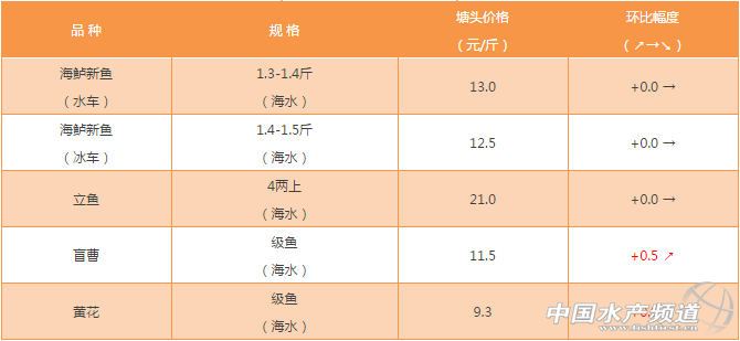 中國水產頻道原創報道,鱸魚級魚存塘少,需求穩定,價格持續保持在高位,后市看漲,現階段中大魚存塘與需求穩定,預計會持續保持在高溫,后市看穩。立魚價格價格穩定,禁魚期后未升;盲曹價格小幅上升;黃花價格上漲目前魚中找魚,級魚和中魚存塘減少。