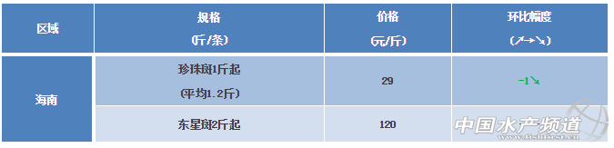 2018年5月5日海南地區(qū)石斑魚塘頭價格行情簡析