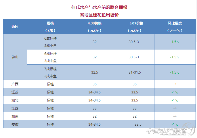 集中上市,鱖魚跌1.5元/斤!——2018年5月7日桂花魚價格行情