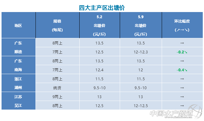 文/圖 杰大飼料 水產(chǎn)前沿實(shí)習(xí)編輯 李曉欣 聯(lián)合發(fā)布 貴州、廣西境內(nèi)多地大規(guī)模拆箱,魚價(jià)沖擊大 目前,貴州烏江、清水江、珠江三大河流庫(kù)區(qū)養(yǎng)殖網(wǎng)箱正大面積清拆,同時(shí)廣西境內(nèi)多地養(yǎng)殖網(wǎng)箱也正被取締清理。一時(shí)之間,不同比例規(guī)格的加州鱸被迫集中上市,貴州、廣西魚價(jià)下跌明顯,其中貴州地區(qū)加州鱸塘頭價(jià)從13.5-14元/斤下跌至13元/斤,廣西地區(qū)魚價(jià)從13.5-14.5元/斤下跌至13元/斤,其他部分省份魚價(jià)上漲勢(shì)頭也受到抑制,業(yè)內(nèi)人士預(yù)計(jì)短期內(nèi)魚價(jià)上漲乏力。 本周各產(chǎn)區(qū)加州鱸行情 廣東順德:今天報(bào)價(jià)7兩上12-12.3元/斤左右,8兩上13.5元/斤。本周8兩上價(jià)格持穩(wěn),7兩規(guī)格看魚的大小比例定價(jià),相比上周價(jià)格略跌了0.2元/斤。近期雨水偏多,塘底較差的魚塘水質(zhì)容易惡化,養(yǎng)戶要注意調(diào)好水質(zhì)以減少應(yīng)激和病害發(fā)生。 廣東南海:今天報(bào)價(jià)7兩上12元/斤左右,8兩上13.5元/斤。本周8兩上價(jià)格持穩(wěn),7兩上規(guī)格相比上周下降了0.5元/斤。目前南海當(dāng)?shù)仞B(yǎng)戶賣魚以8兩上規(guī)格為主,近來天氣反復(fù),產(chǎn)后病等病害易發(fā),部分養(yǎng)殖戶選擇出魚以減少養(yǎng)殖密度,從而降低養(yǎng)殖風(fēng)險(xiǎn)。部分養(yǎng)戶出魚以減少魚塘的超大魚比例,為日后出魚爭(zhēng)取議價(jià)主動(dòng)性。 浙江湖州:今天報(bào)價(jià)8兩上11.5元/斤,統(tǒng)貨報(bào)價(jià)9.5-10元/斤,本周價(jià)格持穩(wěn)。湖州地區(qū)養(yǎng)殖戶目前都在積極統(tǒng)貨出魚,按照目前出魚的速度和情況,預(yù)計(jì)到5月底湖州本地老口鱸魚存塘量會(huì)減少很多。 江蘇吳江:今天報(bào)價(jià)8兩上12-12.5元/斤,9兩上報(bào)價(jià)13元/斤,價(jià)格波動(dòng)不大。目前吳江地區(qū)存塘量仍較大,選擇出魚的養(yǎng)殖戶基本都是挑9兩以上規(guī)格出魚。吳江裝魚的碼頭近來逐步開始營(yíng)業(yè),商品魚收魚量或?qū)⒂兴黾樱A(yù)計(jì)魚價(jià)或會(huì)上漲。 四川成都:今天報(bào)價(jià)9兩上15元/斤,個(gè)別開價(jià)15.5元/斤,根據(jù)出魚頭的大小和大魚比例定價(jià),規(guī)格以9兩-1斤為主的價(jià)格為14.5元/斤。隨著氣溫升高,外地水車到成都收魚減少,由于目前四川存塘量不多且魚產(chǎn)卵后變瘦達(dá)不到規(guī)格,養(yǎng)戶出魚積極性不高,流通商多選擇到貴州那邊收網(wǎng)箱養(yǎng)殖的魚。 湖北武漢:本周魚價(jià)一直維持13.5元/斤,價(jià)格波動(dòng)不大。目前湖北地區(qū)放苗養(yǎng)殖戶有所增多,部分養(yǎng)殖戶在觀望價(jià)格出魚。 湖南華容:今天報(bào)價(jià)9兩以上14元/斤,相比上周價(jià)格上升了0.5元/斤。據(jù)悉,目前這個(gè)價(jià)位仍未達(dá)到當(dāng)?shù)仞B(yǎng)戶的心理預(yù)期,養(yǎng)殖大戶出魚積極性不高,流通商只能找小戶收魚。 廣西南寧:今天報(bào)價(jià)1斤以上14元/斤,相比上周價(jià)格下跌了0.5元/斤。目前廣西多地養(yǎng)殖網(wǎng)箱正被取締清理,魚集中上市導(dǎo)致價(jià)格略有下跌。 貴州遵義:今天0.8-1.3斤規(guī)格報(bào)價(jià)13元/斤,價(jià)格相比上周下降了1元/斤。目前貴州烏江、清水江、珠江三大河流庫(kù)區(qū)養(yǎng)殖網(wǎng)箱正大面積清拆,不同比例規(guī)格的加州鱸被迫集中上市,魚價(jià)下跌明顯。 注:上述價(jià)格及行情分析僅供參考,市場(chǎng)有風(fēng)險(xiǎn),入市需謹(jǐn)慎 【關(guān)鍵字】: 網(wǎng)箱清拆 加州鱸 加州鱸價(jià)格行情 水產(chǎn)養(yǎng)殖網(wǎng) |