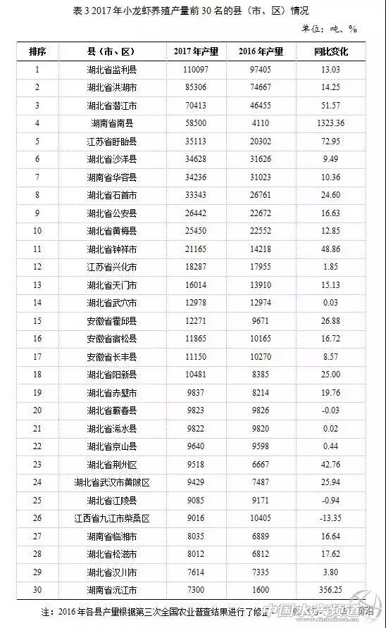 中國水產(chǎn)頻道報道,一條小小的蝦,一個巨大的產(chǎn)業(yè)!2017年養(yǎng)殖面積1200萬畝、養(yǎng)殖量112多萬噸或超過了南美白對蝦產(chǎn)量(有數(shù)據(jù)統(tǒng)計南美白對蝦年產(chǎn)量已不足100萬噸,甚至少于80萬噸),經(jīng)濟總產(chǎn)值2685億元,從業(yè)人員520萬人。近日,農(nóng)業(yè)農(nóng)村部漁業(yè)漁政管理局、全國水產(chǎn)技術(shù)推廣總站、中國水產(chǎn)學會三部門聯(lián)合權(quán)威發(fā)布了《中國小龍蝦產(chǎn)業(yè)發(fā)展報告(2018)》。你嗅到商機了嗎? 中國小龍蝦產(chǎn)業(yè)發(fā)展報告(2018) 農(nóng)業(yè)農(nóng)村部漁業(yè)漁政管理局 全國水產(chǎn)技術(shù)推廣總站 中國水產(chǎn)學會 (2018年6月) 2017年,中國小龍蝦(克氏原螯蝦,Procam barusclarkii)養(yǎng)殖面積突破1000萬畝,產(chǎn)量突破100萬噸,經(jīng)濟總產(chǎn)值突破2600億元(未包括香港特別行政區(qū)、澳門特別行政區(qū)和臺灣省的統(tǒng)計,下同)。小龍蝦養(yǎng)殖已成為生態(tài)循環(huán)農(nóng)業(yè)發(fā)展的主要模式之一,是新時代加快推進漁業(yè)綠色發(fā)展最具活力、潛力和特色的朝陽產(chǎn)業(yè),是中國實施鄉(xiāng)村振興戰(zhàn)略和農(nóng)業(yè)產(chǎn)業(yè)精準扶貧的有效抓手,在培育地方經(jīng)濟增長新動能、推進農(nóng)(漁)業(yè)供給側(cè)結(jié)構(gòu)性改革、促進農(nóng)(漁)業(yè)增效和農(nóng)(漁)民增收過程中發(fā)揮著重要作用。 為促進小龍蝦產(chǎn)業(yè)持續(xù)健康發(fā)展,農(nóng)業(yè)農(nóng)村部漁業(yè)漁政管理局聯(lián)合全國水產(chǎn)技術(shù)推廣總站、中國水產(chǎn)學會組織專家編寫了《中國小龍蝦產(chǎn)業(yè)發(fā)展報告(2018)》。報告重點對2017年度我國小龍蝦產(chǎn)業(yè)的發(fā)展狀況進行全面梳理、全面分析面臨形勢和挑戰(zhàn),總結(jié)發(fā)展特點、預(yù)測發(fā)展形勢、提出發(fā)展建議。 一 產(chǎn)業(yè)產(chǎn)值 中國小龍蝦產(chǎn)業(yè)從最初的“捕撈+餐飲”起步,逐步形成了集苗種繁育、健康養(yǎng)殖、加工出口、精深加工、物流餐飲、文化節(jié)慶于一體的完整產(chǎn)業(yè)鏈。據(jù)測算,2017年全國小龍蝦全社會經(jīng)濟總產(chǎn)值約2685億元,比2016年增長83.15%。其中,養(yǎng)殖業(yè)產(chǎn)值約485億元,以加工業(yè)為主的第二產(chǎn)業(yè)產(chǎn)值約200億元,以餐飲為主的第三產(chǎn)業(yè)產(chǎn)值約2000億元,分別占全社會經(jīng)濟總產(chǎn)值的18.06%、7.45%、74.49%。 據(jù)不完全統(tǒng)計,2017年全國從事小龍蝦生產(chǎn)經(jīng)營的合作經(jīng)濟組織近5000個,小龍蝦全產(chǎn)業(yè)鏈從業(yè)人員約520萬人,其中,從事第一產(chǎn)業(yè)人員近100萬人、從事小龍蝦加工等第二產(chǎn)業(yè)人員近20萬人、小龍蝦流通經(jīng)紀人約10萬人。 二 養(yǎng)殖生產(chǎn)情況 (一)產(chǎn)量情況 據(jù)統(tǒng)計,2017年,中國有小龍蝦養(yǎng)殖產(chǎn)量報告的省份有19個,依次為湖北、安徽、湖南、江蘇、江西、河南、四川、山東、浙江、重慶、云南、廣東、廣西、福建、貴州、上海、寧夏、新疆、河北。全國小龍蝦養(yǎng)殖總產(chǎn)量為112.86萬噸,其中湖北省63.16萬噸、安徽省13.77萬噸、湖南省13.57萬噸、江蘇省11.42萬噸、江西省7.44萬噸。上述5省份的小龍蝦養(yǎng)殖產(chǎn)量小計為109.36萬噸,占全國總產(chǎn)量的96.90%,其中湖北省產(chǎn)量最大,占全國的55.96%。 2017年,全國小龍蝦養(yǎng)殖產(chǎn)量前30名的縣(市、區(qū))中,湖北省20個、安徽省3個、江西省1個、湖南省4個、江蘇省2個。30個縣(市、區(qū))的小龍蝦養(yǎng)殖總產(chǎn)量為73.49萬噸,占全國小龍蝦養(yǎng)殖總產(chǎn)量的65.12%。其中,湖北省監(jiān)利縣小龍蝦產(chǎn)量為11萬噸,是唯一產(chǎn)量超過10萬噸的縣。 (二)養(yǎng)殖面積分布 據(jù)不完全統(tǒng)計,2017年全國小龍蝦養(yǎng)殖面積達1200萬畝,較2016年增加300萬畝。按養(yǎng)殖水域分,2017年全國小龍蝦稻田養(yǎng)殖面積約為850萬畝,占總養(yǎng)殖面積的70.83%,池塘養(yǎng)殖面積約為200萬畝,占總養(yǎng)殖面積的16.67%,其他蝦蟹混養(yǎng)、大水面增殖、蓮(葦)田套養(yǎng)等混養(yǎng)面積約為150萬畝,占總養(yǎng)殖面積的12.50%。2017年全國小龍蝦稻田養(yǎng)殖面積約占全國稻田養(yǎng)魚面積2524萬畝的47.54%,較2016年增加了7.54個百分點。 從分省情況看,2017年小龍蝦養(yǎng)殖產(chǎn)量前5名的省份中,湖北省的小龍蝦養(yǎng)殖面積為544.00萬畝、安徽省為148.00萬畝、江蘇省為138.20萬畝、湖南省為120.00萬畝、江西省為59.00萬畝。5省份的小龍蝦養(yǎng)殖面積均呈逐年增長趨勢。 (三)養(yǎng)殖模式 目前,小龍蝦養(yǎng)殖模式主要有稻蝦綜合種養(yǎng)、池塘主養(yǎng)、蓮藕(葦)田套養(yǎng)、河蟹池混養(yǎng)、大水面人工增養(yǎng)殖等。其中,稻蝦綜合種養(yǎng)為各地主要養(yǎng)殖模式,此模式可細分為稻蝦連作、稻蝦連作+共作等模式。 1、稻蝦模式。稻蝦連作:種一季中稻,養(yǎng)一季小龍蝦。即每年8-9月中稻收割前投放親蝦,或10-11月水稻收割后投放幼蝦,翌年4-5月收獲成蝦,6月整田插秧,種一季中稻,循環(huán)輪替。此模式一般畝產(chǎn)小龍蝦100公斤、水稻500公斤,畝均產(chǎn)值4500元左右,畝均利潤2000元左右。稻蝦連作+共作:養(yǎng)