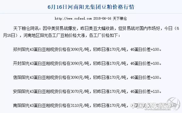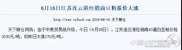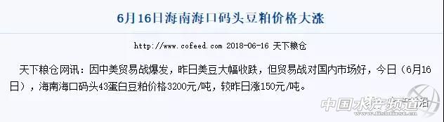 中國水產(chǎn)頻道綜合整理報道,6月15日,美國政府發(fā)布了加征中國進(jìn)口500億美元商品25%關(guān)稅清單,昨天,國務(wù)院關(guān)稅稅則委員會也決定對原產(chǎn)于美國的659項約500億美元進(jìn)口商品加征25%的關(guān)稅,其中545項約340億美元商品自2018年7月6日起實施加征關(guān)稅。【清單詳情請點擊:養(yǎng)戶擔(dān)心飼料價格要大漲?昨天中國霸氣反擊宣布對美國大豆、玉米等飼料原料及近200項水產(chǎn)品加征關(guān)稅!】 中國加征美國商品關(guān)稅名單中,業(yè)內(nèi)人士尤其是養(yǎng)殖戶非常關(guān)注的飼料原料大豆赫然在列,另外還有玉米、高粱等。盡管2018年7月6日起才實施加征關(guān)稅,但嗅出戰(zhàn)火硝煙的商家在昨天(6月16日)快速上調(diào)了豆粕價格,幅度之大令人咋舌,最高暴漲了330元/噸。 根據(jù)天下糧倉消息:因中美貿(mào)易戰(zhàn)爆發(fā),前天美豆大幅收跌,國內(nèi)經(jīng)銷商普遍惜售,提價意愿強(qiáng)烈。昨天,43蛋白豆粕價格大漲。其中到廠提貨價,日照中紡產(chǎn)3120元/噸,較前天上漲310元/噸,日照邦基產(chǎn)3150元/噸,較前天大漲330元/噸,日照凌云海產(chǎn)3120元/噸,較前天上漲310元/噸,日照達(dá)孚3120元/噸,泰州益海產(chǎn)3140元/噸,阜寧北大荒產(chǎn)3120元/噸。 另外漲價地區(qū)還有河南鄭州、開封、信陽、安陽和南陽;海南海口;江蘇泰州、連云港等。具體見下圖: 另據(jù)糧油信息網(wǎng)分析,目前,國內(nèi)豆粕庫存壓力依舊較大。6月大豆共計將有127船,約811.3萬噸大豆到港。雖然巴西工人罷工延緩大豆集中到港,但由于整體總量較高,致使油廠短期仍將維持較高開機(jī)率,導(dǎo)致豆粕供應(yīng)偏高。同時國內(nèi)油廠豆粕庫存增加較少,但整體豆粕庫存壓力較大。雖然6月上旬山東青島及其周邊地區(qū)因上合峰會影響,出現(xiàn)短期停機(jī),但由于地域影響有限且該地區(qū)交通亦受到限制,致使國內(nèi)油廠豆粕庫存壓力依舊較大。 最后,中美貿(mào)易戰(zhàn)開始后,或?qū)⒋碳鴥?nèi)對巴西大豆需求增加。但由于6-8月船期基本已經(jīng)鎖定,致使大豆原料價格短期仍難有上漲空間。 綜上所述,國內(nèi)豆粕現(xiàn)貨價格后市將以漲為主,但不易過分追高。雖然中美貿(mào)易戰(zhàn)指引國內(nèi)大豆及豆產(chǎn)品價格帶來支撐,并刺激國內(nèi)豆粕市場需求整體增加,但由于國內(nèi)豆粕基本面堪憂,或?qū)?dǎo)致終端市場對豆粕需求“熱度”減緩。筆者認(rèn)為,中美貿(mào)易戰(zhàn)或?qū)⑻嵴駠鴥?nèi)豆粕市場有10-15天左右的需求高漲,致使筆者建議各豆粕貿(mào)易商在未來10-15天內(nèi)可適度拋售豆粕,不宜補(bǔ)貨。同時,7月6日才實施加征關(guān)稅。而根據(jù)美國1974年貿(mào)易法,特朗普可以將關(guān)稅啟動日延后30天;如果美國貿(mào)易代表與中國談判取得進(jìn)展,還可以再延180天,致使豆粕后市仍有較多變故。 綜合以上分述,目前豆粕價格大幅飆漲,持續(xù)時間會很久嗎?后市會不會降溫?飼料價格趨勢又如何呢?未來還是關(guān)注飼料企業(yè)的動態(tài)。 附: 國務(wù)院關(guān)稅稅則委員會關(guān)于對原產(chǎn)于美國 500億美元進(jìn)口商品加征關(guān)稅的公告 稅委會公告﹝2018﹞5號 2018年6月15日,美國政府發(fā)布了加征關(guān)稅的商品清單,將對從中國進(jìn)口的約500億美元商品加征25%的關(guān)稅,其中對約340億美元商品自2018年7月6日起實施加征關(guān)稅,同時就約160億美元商品加征關(guān)稅開始征求公眾意見。美方這一措施違反了世界貿(mào)易組織相關(guān)規(guī)則,有悖于中美雙方磋商已達(dá)成的共識,嚴(yán)重侵犯我方的合法權(quán)益,威脅我國國家和人民的利益。 根據(jù)《中華人民共和國對外貿(mào)易法》《中華人民共和國進(jìn)出口關(guān)稅條例》等法律法規(guī)和國際法基本原則,國務(wù)院關(guān)稅稅則委員會決定對原產(chǎn)于美國的659項約500億美元進(jìn)口商品加征25%的關(guān)稅,其中545項約340億美元商品自2018年7月6日起實施加征關(guān)稅,對其余商品加征關(guān)稅的實施時間另行公布。有關(guān)事項如下: 一、對農(nóng)產(chǎn)品、汽車、水產(chǎn)品等545項商品,自2018年7月6日起實施加征關(guān)稅,具體商品范圍見附表1。 二、對化工品、醫(yī)療設(shè)備、能源產(chǎn)品等114項商品,加征關(guān)稅實施時間另行公告,具體商品范圍見附表2。 三、對原產(chǎn)于美國的附表1和2所列進(jìn)口商品,在現(xiàn)行征稅方式、適用關(guān)稅稅率基礎(chǔ)上加征25%的關(guān)稅,現(xiàn)行保稅、減免稅政策不變,此次加征的關(guān)稅不予減免。 四、加征關(guān)稅后有關(guān)進(jìn)口稅收計算公式: 關(guān)稅=按現(xiàn)行適用稅率計算的應(yīng)納關(guān)稅稅額+關(guān)稅完稅價格×加征關(guān)稅稅率 從價定率商品進(jìn)口環(huán)節(jié)消費稅=進(jìn)口環(huán)節(jié)消費稅計稅價格×消費稅比例稅率 從量定額商品進(jìn)口環(huán)節(jié)消費稅=進(jìn)口數(shù)量×消費稅定額稅率 復(fù)合計稅商品進(jìn)口環(huán)節(jié)消費稅=進(jìn)口環(huán)節(jié)消費稅計稅價格×消費稅比例稅率+進(jìn)口數(shù)量×消費稅定額稅率 從價定率商品進(jìn)口環(huán)節(jié)消費稅計稅價格=(關(guān)稅完稅價格+關(guān)稅)÷(1——消費稅比例稅率