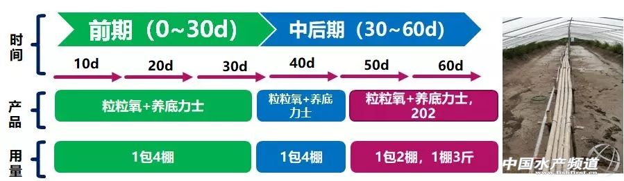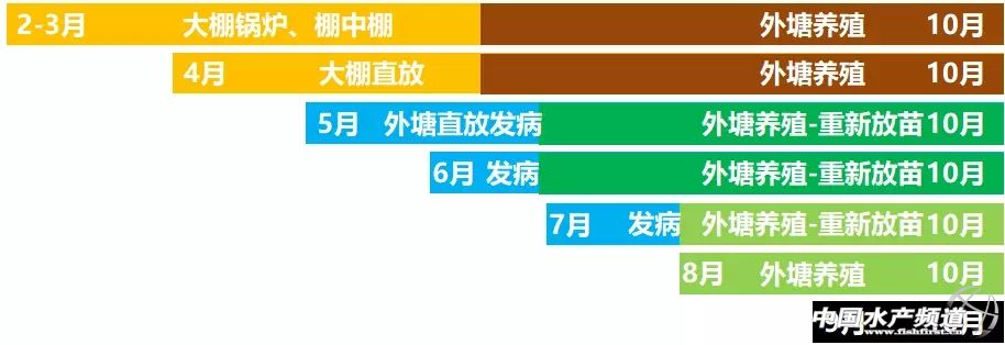 文/圖 浙江海大飼料有限公司 孫存軍 中國水產頻道原創報道,農業生產,自古就是“靠天吃飯”的,風調雨順,可以有個好收成;天災地變,常會導致顆粒無收;因此,“旱澇保收”,一直是農業研究的方向。水產養殖,受天氣和氣候的影響尤為明顯,大到“臺風、梅雨、高溫”,小到“暴雨、陰天、寒潮”,每一次天氣的異動、每一輪氣候的交替,都牽動著水產人的心。 隨著行業的進步,部分模式通過“遮天蔽地”,已經逐漸降低了自然條件的影響:“遮天”主要是蓋膜,不僅提高溫度,更隔絕雨水,達到“放早苗、趕高價、保存活”的效果;“蔽地”主要是鋪膜或水泥,讓底更平整,集污高效,提高了產量。 水產行業的進步讓人興奮,但是,我們也清醒地看到,我國水產養殖的大部分面積仍舊是外塘,嚴重依賴天氣。本文通過對浙江外塘南美白對蝦高溫期特點的分析,結合海大“1+6”的養殖理念,對高溫期養殖管理給出一些建議。 第一部分 高溫期——決定一年成敗 1、高溫期是收獲的季節、也是最后一次放苗的機會: 圖1:浙江省紹興市2017年1-12月月度平均氣溫變化趨勢(日平均氣溫=【日最高溫+日最低溫】/2) 圖2:浙江白蝦各種養殖模式的組合分析 由圖1可以看出,浙江的7月和8月是高溫期,9月之后氣溫顯著下降。大棚養殖基本上在7月份之前完成收蝦,開始第二造養殖;對于發病的塘口,如果在8月份之前發病,尚可以補苗,8月,將是一年之中最后一次放苗的機會。因此,高溫期的南美白對蝦管理很關鍵,第一造養殖成功的要再接再厲,第一造養殖失敗的要逆境突圍。 2、高溫期是南美白對蝦生長的黃金時期: 圖3:水溫與南美白對蝦日攝食率(%)的關系 圖4:水溫與南美白對蝦體長日增長(μm)的關系 圖5:水溫與南美白對蝦日增重(㎎)的關系 備注:圖4-圖6數據引自陳昌生等的“南美白對蝦攝食、生長及存活與溫度的關系。” 從圖4、圖5、圖6可以看處,水溫30℃時,南美白對蝦日攝食率最高,體長日增長也最高,日增重也極顯著高于27℃(相比水溫33℃時稍低)。因此,我們可以得出一個結論:高溫期,是南美白對蝦生長的黃金時期。 3、高溫期養殖問題頻發的原因:只因一切來得太快。 圖6:南美白對蝦養殖池塘氮循環簡化示意圖 如圖7所示,正常情況下(如養殖前期),殘餌、糞便可以通過細菌的分解和藻類的吸收而得以轉化,不會導致氨氮、亞硝酸鹽的積累,池塘的物質循環和能量流動是良性的,未超出池塘的自凈能力。但是,當高溫期來臨,一切都來的太快了:蝦子日攝食量增加、累計投喂量大、藻類營養過剩。從而,氨氮高、亞硝酸鹽高、藻類濃度高的情況頻發。而處理這種情況的主要思路是補菌抑藻,促進氨氮和亞硝酸鹽的順利轉化,抑制池塘pH值的持續升高。 第二部分 海大“1+6”,養殖好幫手 圖7:海大“1+6”養殖理念 1、生產規劃:科學養蝦,從做好養殖規劃開始! 說到養殖規劃,這里先聊幾個問題: 決定出蝦的因素是什么?是蝦價?是產量?還是頂到蝦子發病才賣蝦? 你的池塘增氧機多少千瓦一畝?近3年最高的產量是多少? 畝投喂超過300斤,底質開始惡化、亞鹽開始升高,這個說法你聽說過嗎? 為什么有些人蝦子越抓越多,越抓越大?而有些人蝦子抓一次就迫收? 什么叫做養殖規劃,簡單地說就是“什么時候放苗?放苗密度是多少?”和“什么時候賣蝦?池塘承載力多少?” 決定養殖規劃的因素是什么呢?我們可以借鑒老祖宗“天時、地利、人和”的方法論去分析: 所謂“天時”,就是養殖規劃要結合當地的氣候和天氣特點,充分考慮到溫度、降雨、光照、臺風等影響因素; 所謂“地利”,指的是養殖場的基礎條件、所在區域的蝦價變化趨勢。其中,基礎條件又包括是否搭棚、底質情況、增氧機配備、進排水情況等; 所謂“人和”,就是要考慮到歷史畝產、養殖技術水平、養殖管理水平、養殖場人員架構等因素。 養殖規劃切記要做到“因地制宜、留有余地”,切忌“好高騖遠、鋌而走險”。 2、海大“1+6”之穩水:養蝦先養水,水好蝦才好,蝦好水更好。 我所理解的穩水,廣義上說就是菌藻平衡,不管是清水、濃水、濁水,說的都是菌藻平衡的問題,而常見的養殖問題如“氨氮高、亞硝酸鹽高、pH值高、水濃、藍藻、倒藻、弧菌超標”等,也是菌藻平衡的問題。所以,南美白對蝦養殖,只要將菌藻平衡做到位,就規避了大部分的養殖風險。 如何做到菌藻平衡?養殖前期,有的人喜歡清水放苗,有的人喜歡肥水放苗,其實都沒錯。而相對于養殖后期,即使是養殖前期的“肥水”,也是相對的清水。養殖中后期,除了濁水,相信很多人難以將水做清,大部分的池塘養殖中后期是肥水。而菌相,這是要逐步建立的,我認為,只要池塘pH值不是特別低(8.0以下),菌相越豐富越好,特別是池塘土著菌的活性越強越好。 有一種說法,叫做“養殖前期菌相為主、養殖中期藻相為主、養殖后期菌藻平衡”。本文不談這種說法是對是錯,只是討論一下藻相和菌相如何調控。 ①藻相調控:說到藻相,仍舊離不開藻類生長的三元理論。 圖8:藻類生長的三元理論 池塘藻類的生長主要受光照、營養和藻種的影響。我認為,藻種在外塘養殖中并不會成為池塘藻相的決定性因素,外塘水體的藻相應該是“適者生存”的結果,藻相主要是營養比例和光照強度綜合作用的結果。 池塘營養比例合理,光照強度適中時,小型藻類會占據優勢,水質就會相對穩定,蝦子相對健康。 池